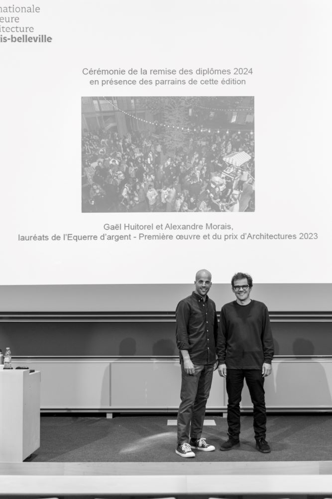 La cérémonie de remise des diplômes se déroulera vendredi 5 juillet à 18h en amphithéâtre Bernard Huet en présence des parrains de cette édition : Gaël Huitorel et Alexandre Morais, diplômés de l’école, lauréats de l’Equerre d’argent – Première œuvre 2023 et du prix d’Architectures 2023.