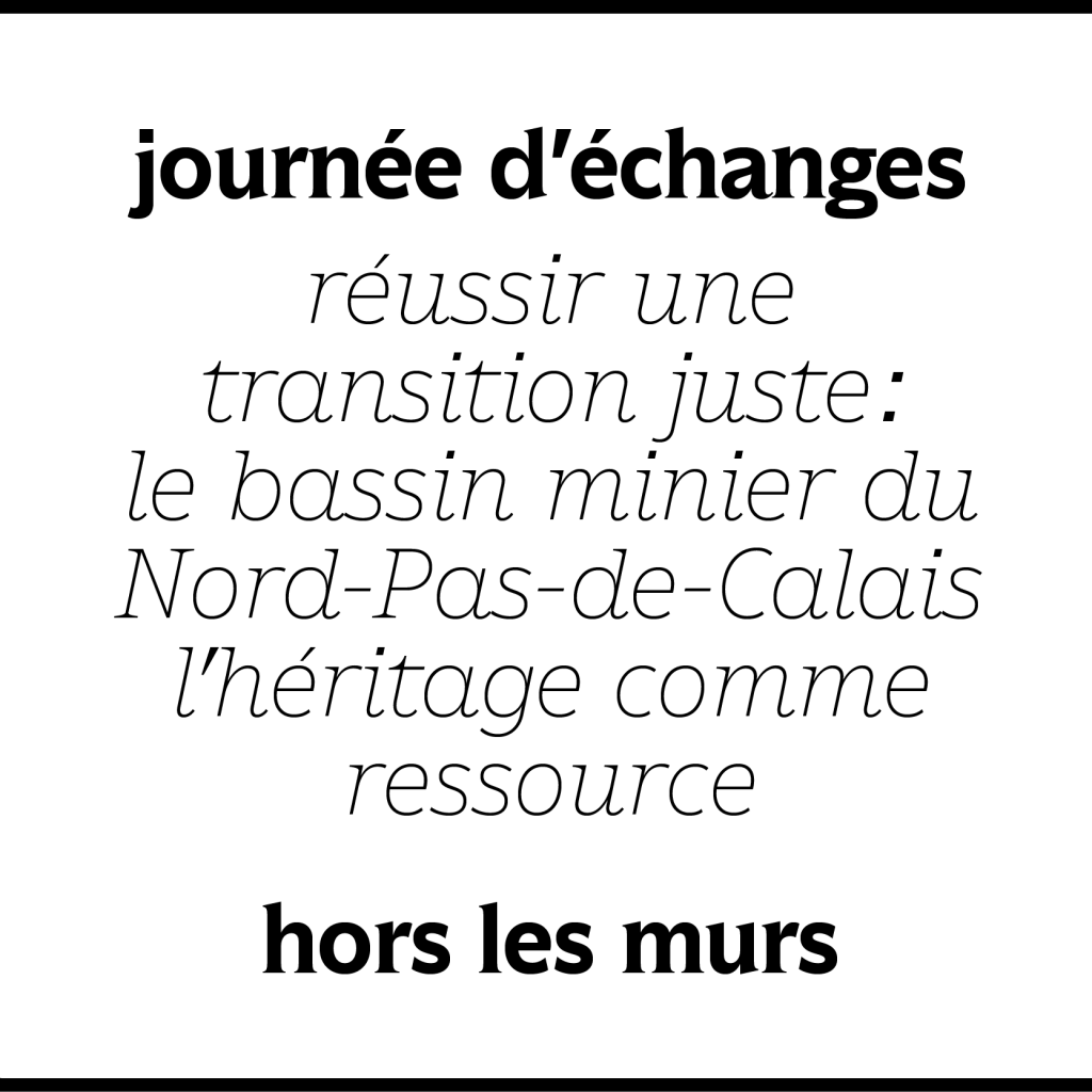 Le laboratoire IPRAUS (UMR AUSser 3329) a le plaisir de vous inviter Mardi 24 mai 2022 (9h-18h00) à la journée d’échanges Réussir une transition juste : Le bassin minier du Nord-Pas-de-Calais. L’héritage comme ressource organisée par Philippe Prost, architecte-urbaniste, professeur à l’Énsa de Paris-Belleville, membre de l’IPRAUS, en collaboration avec la Mission Bassin Minier et la Cité de l’Architecture et du Patrimoine.