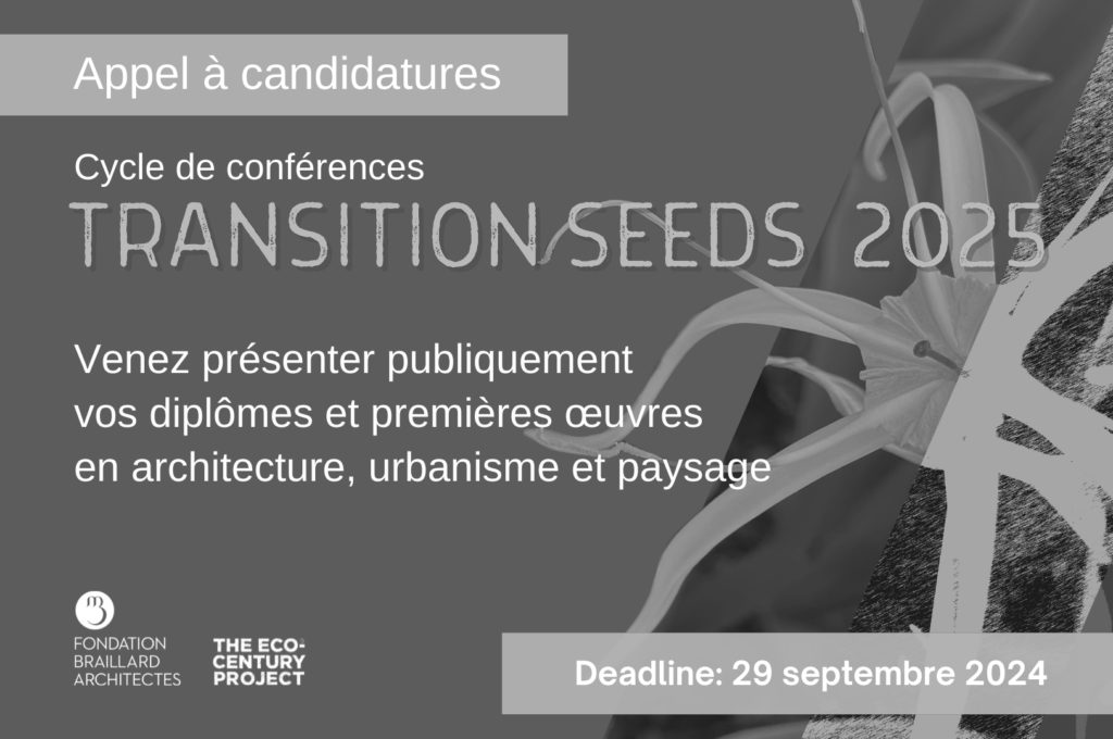 Pour sa sixième édition, la série de conférences Transition Seeds offre la possibilité aux jeunes diplômés de venir présenter publiquement leur projet de diplôme et leurs premiers travaux en architecture, paysage et urbanisme.